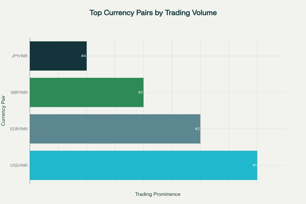 The leading currency pair in India is USD/INR; however, several others are traded actively: