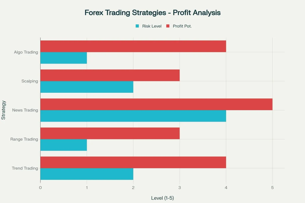 Range Trading: Profitable when the markets are flat. Traders can specify acceptable support and resistance zones. Buying low and selling high.
